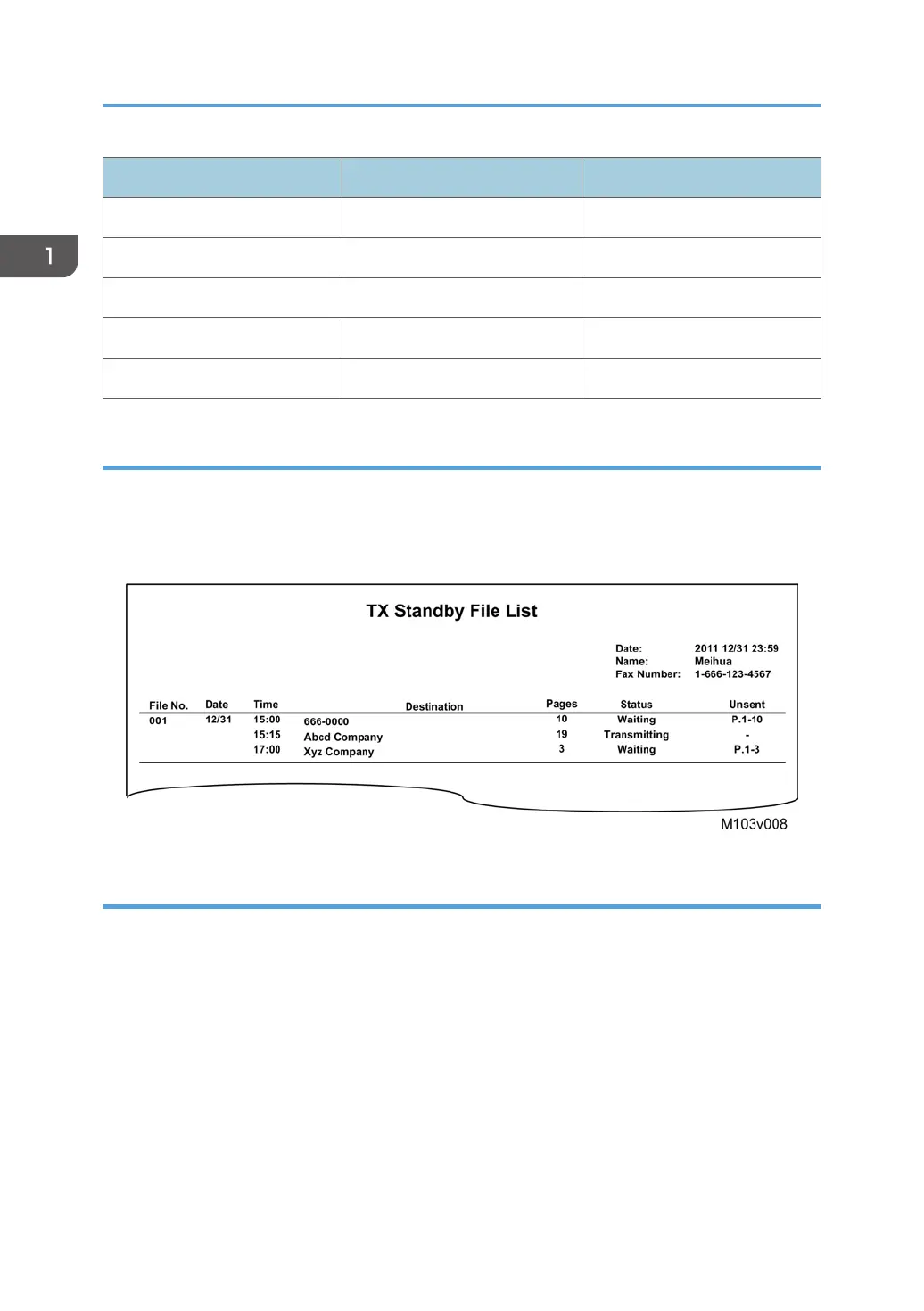 To Print a Standby File List: [User Tools] > "Report Print Set" > "TX Standby File List"