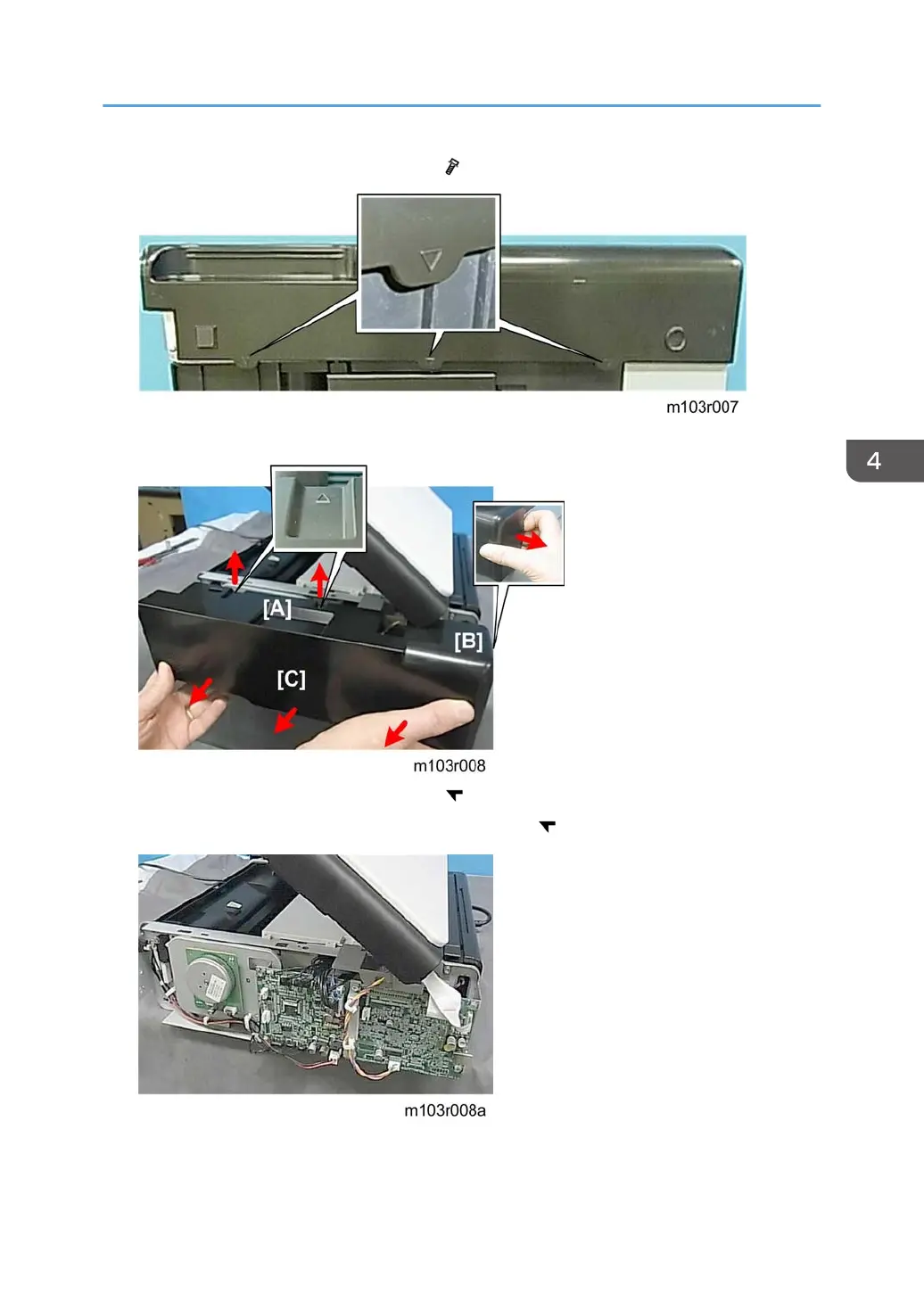 4. Release the tabs on the bottom [C] and remove the cover ( x3).