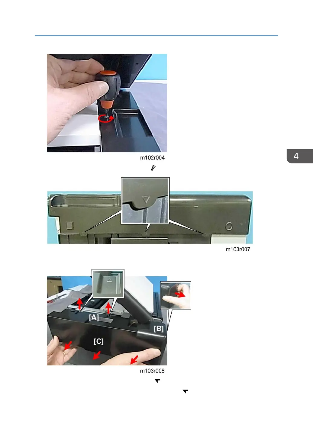 4. Release the tabs on the bottom [C] and remove the cover ( x3).