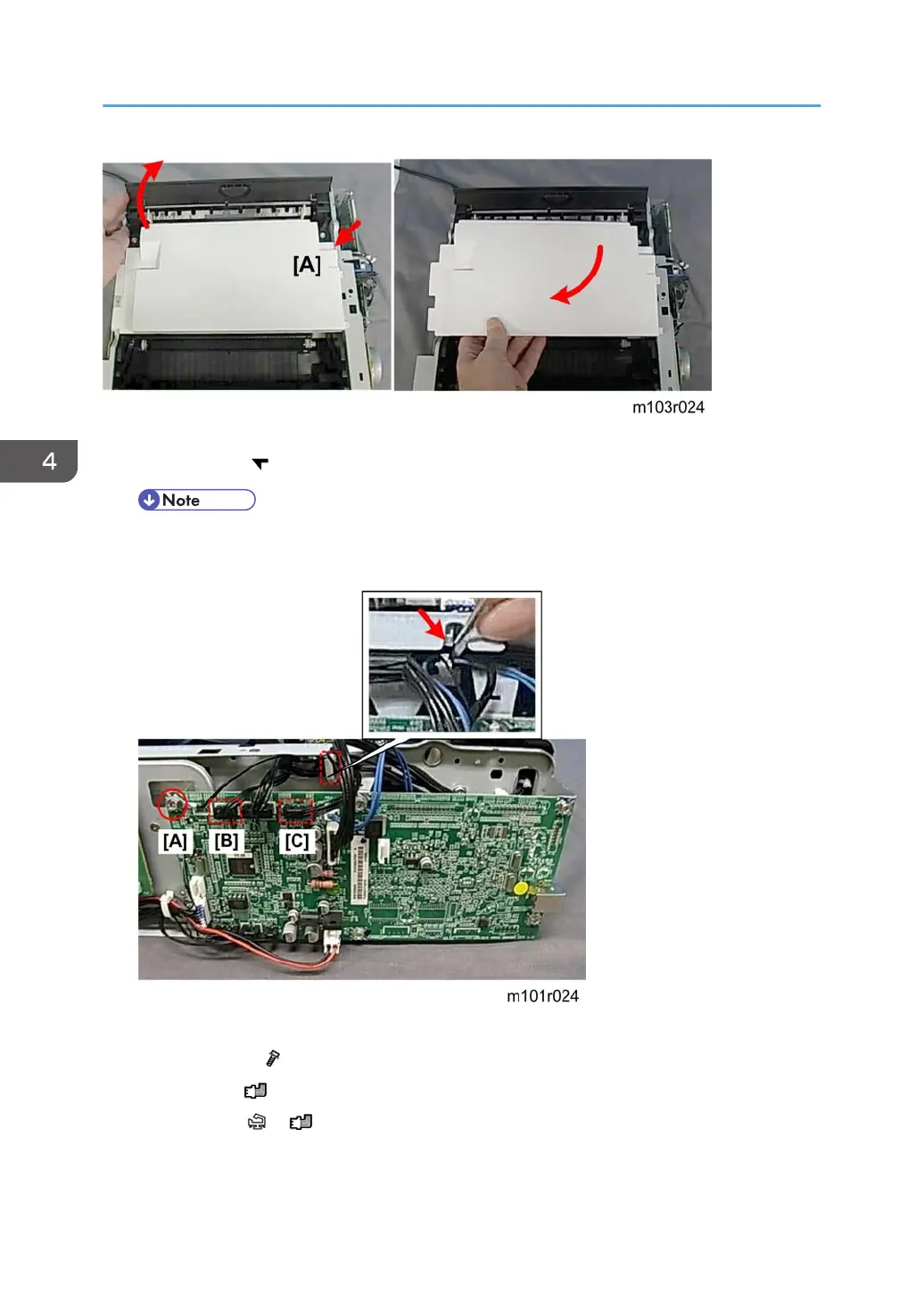 1. If you are servicing the M102 or M103, you must release the tab on the right [A] and remove the