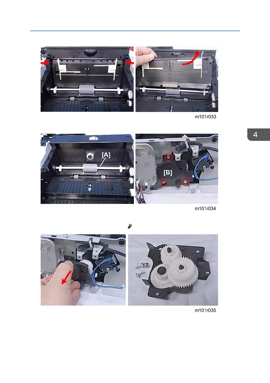 8. The pickup roller [A] in the center of the paper path is permanently attached to its shaft.