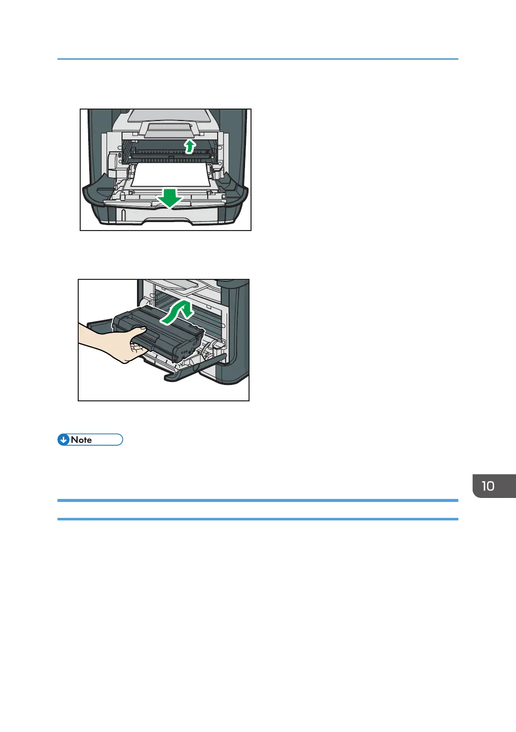 12. Lifting the guide plate, remove the jammed paper carefully.