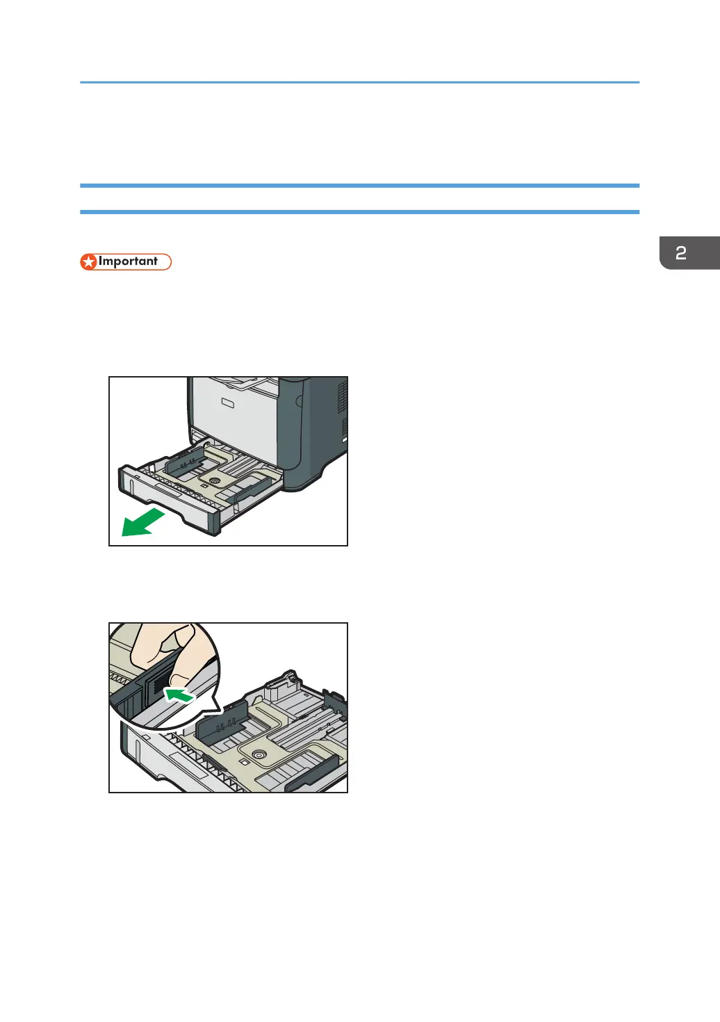 The following example explains loading procedure for the standard paper tray (Tray 1).