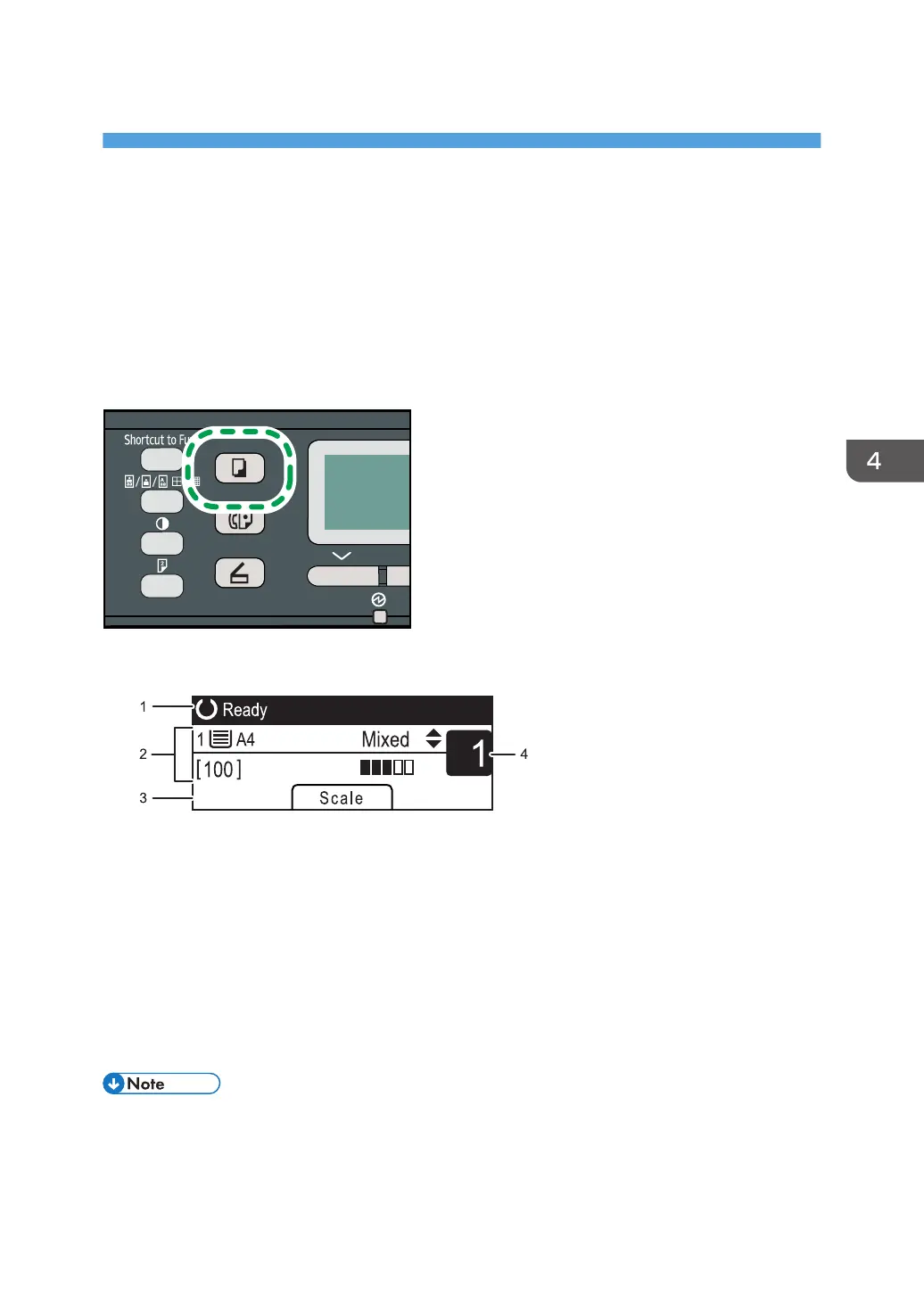 If the scanner or fax screen is shown on the display, press the [Copy] key on the control panel to switch