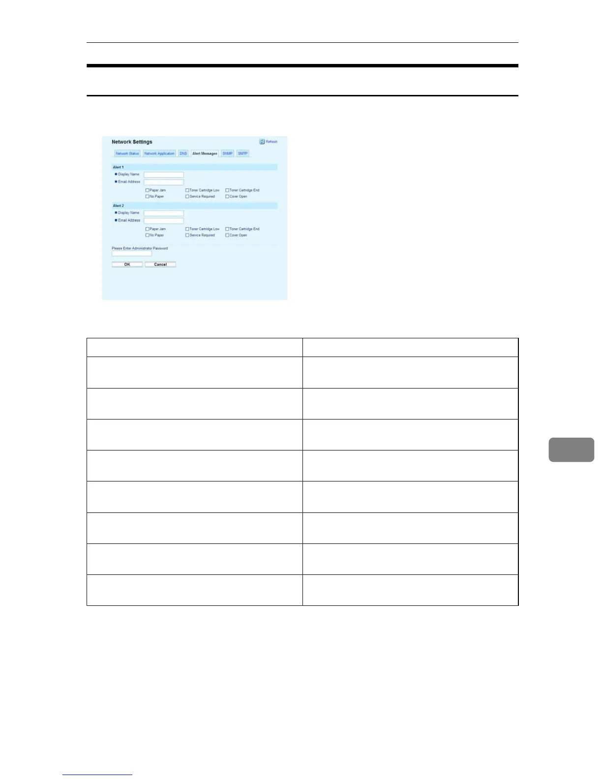 Click the [Alert Messages] tab on the network settings page to configure the alert