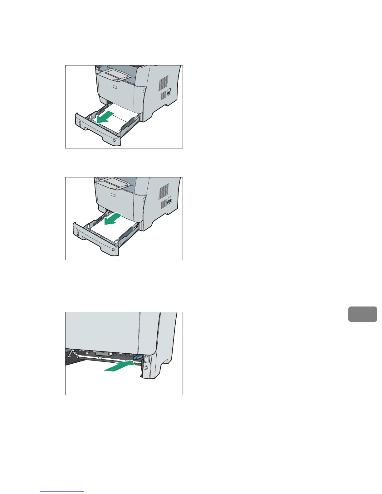 D Pull tray 1 halfway out, and check for jammed paper. If there is jammed pa-