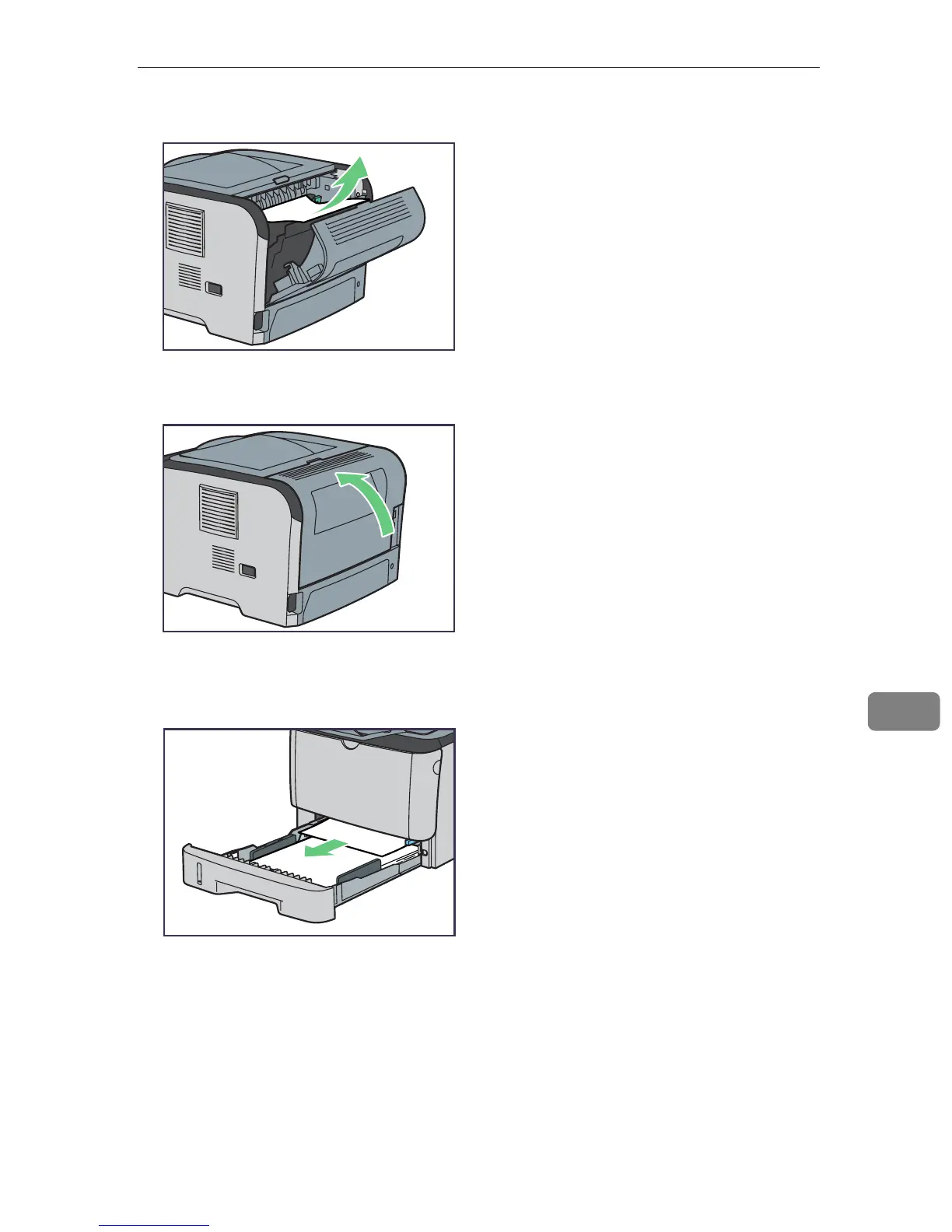 B Remove the jammed paper carefully.
