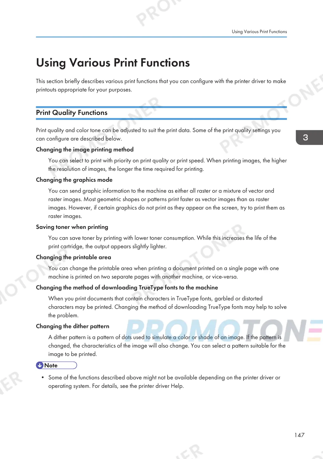 Ricoh Aficio SP 350SF - Using Various Print Functions; Print Quality Functions