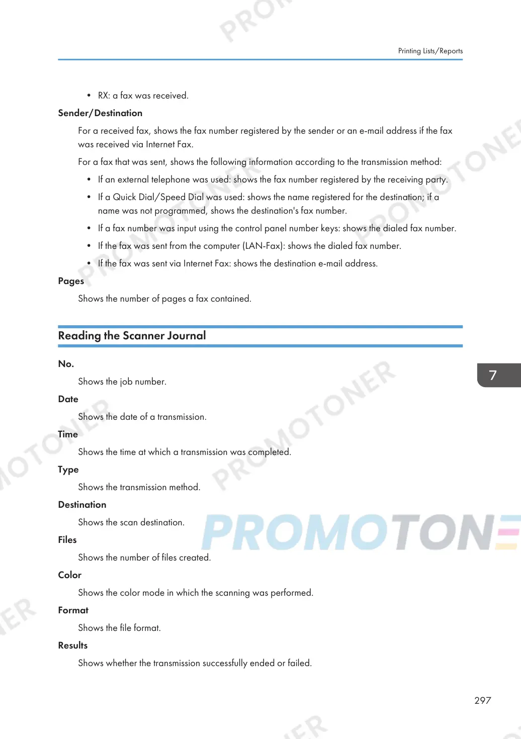 For a received fax, shows the fax number registered by the sender or an e-mail address if the fax