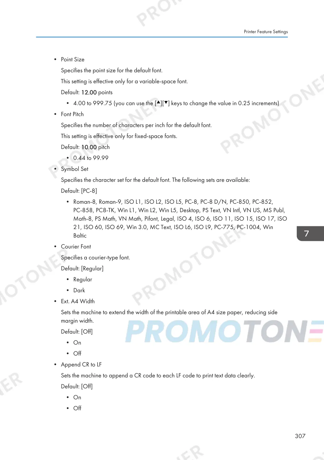 21, ISO 60, ISO 69, Win 3.0, MC Text, ISO L6, ISO L9, PC-775, PC-1004, Win