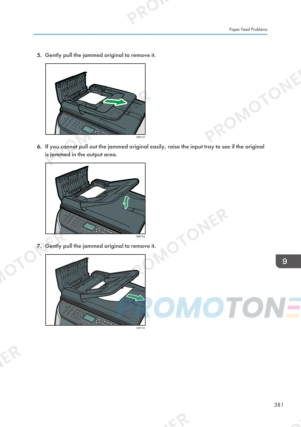 6. If you cannot pull out the jammed original easily, raise the input tray to see if the original