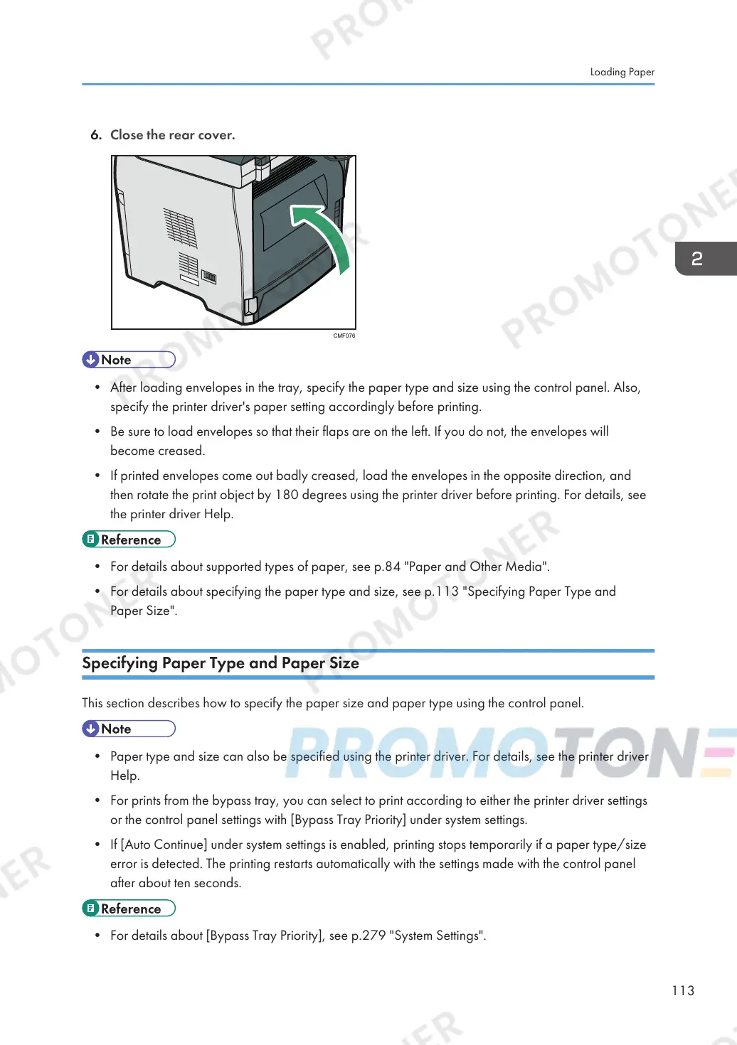 • For details about specifying the paper type and size, see p.113 "Specifying Paper Type and