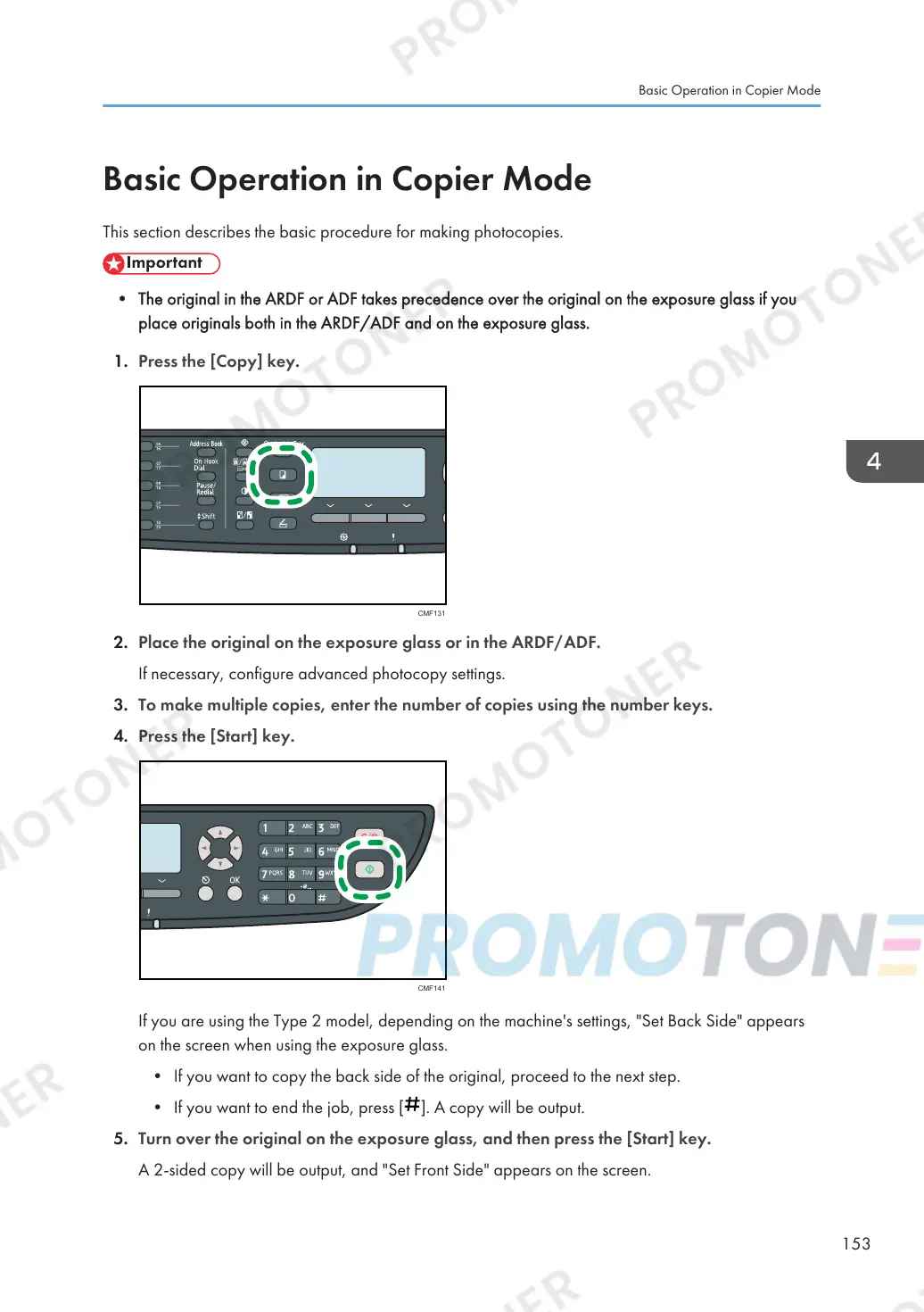 A 2-sided copy will be output, and "Set Front Side" appears on the screen.