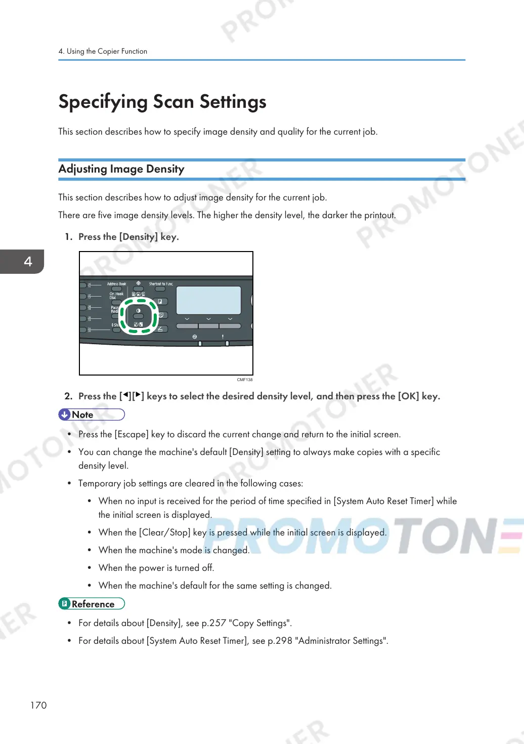 • You can change the machine's default [Density] setting to always make copies with a specific