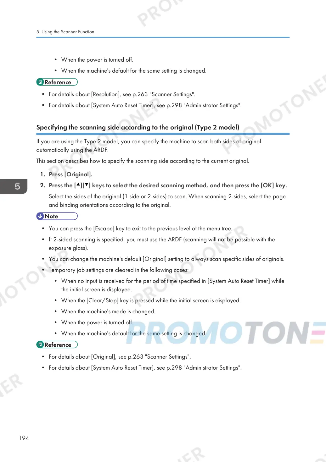 • For details about [System Auto Reset Timer], see p.298 "Administrator Settings".