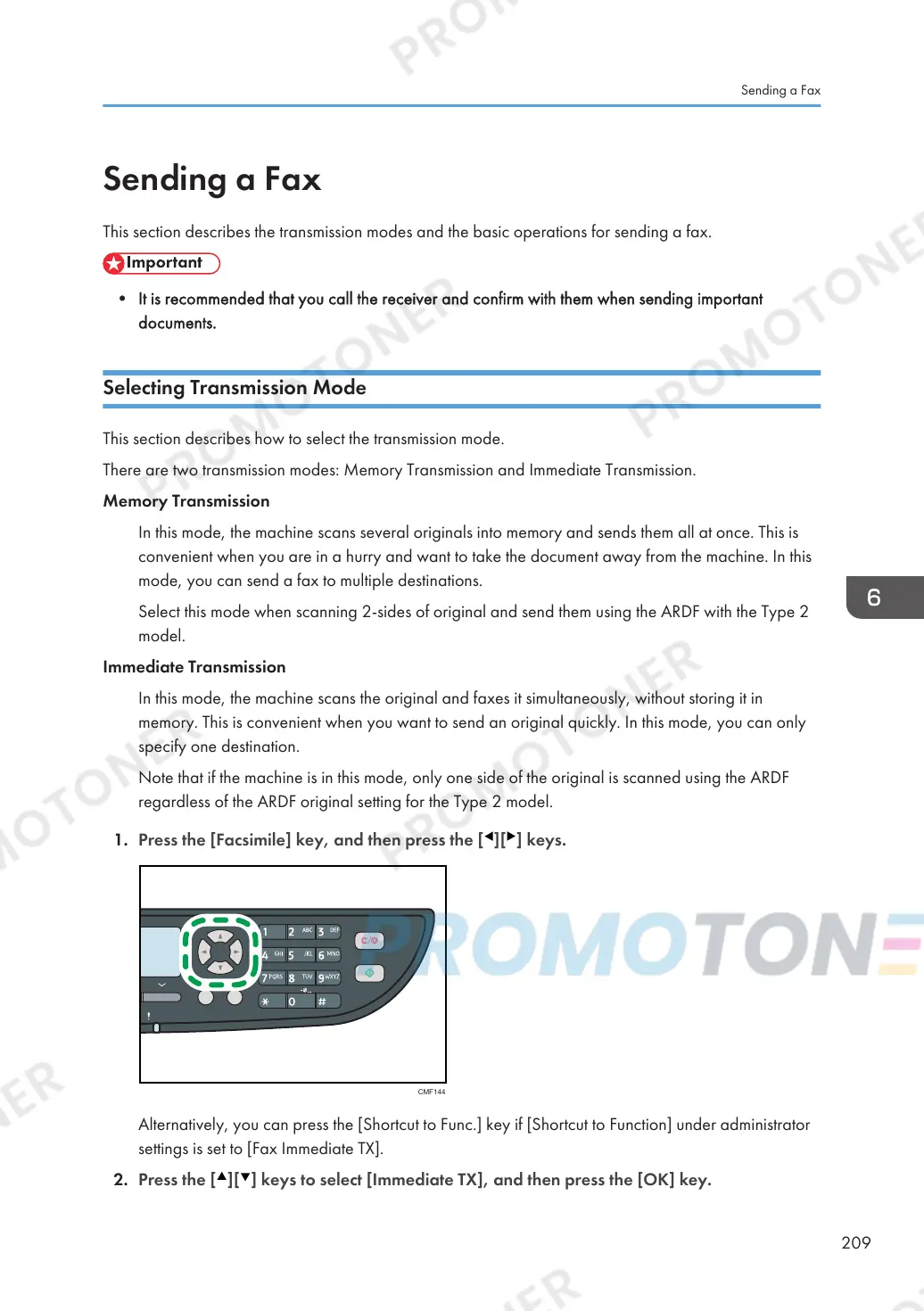2. Press the [ ][ ] keys to select [Immediate TX], and then press the [OK] key.