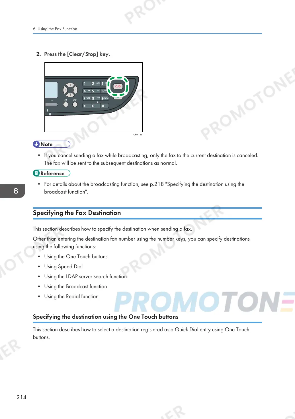 • If you cancel sending a fax while broadcasting, only the fax to the current destination is canceled.