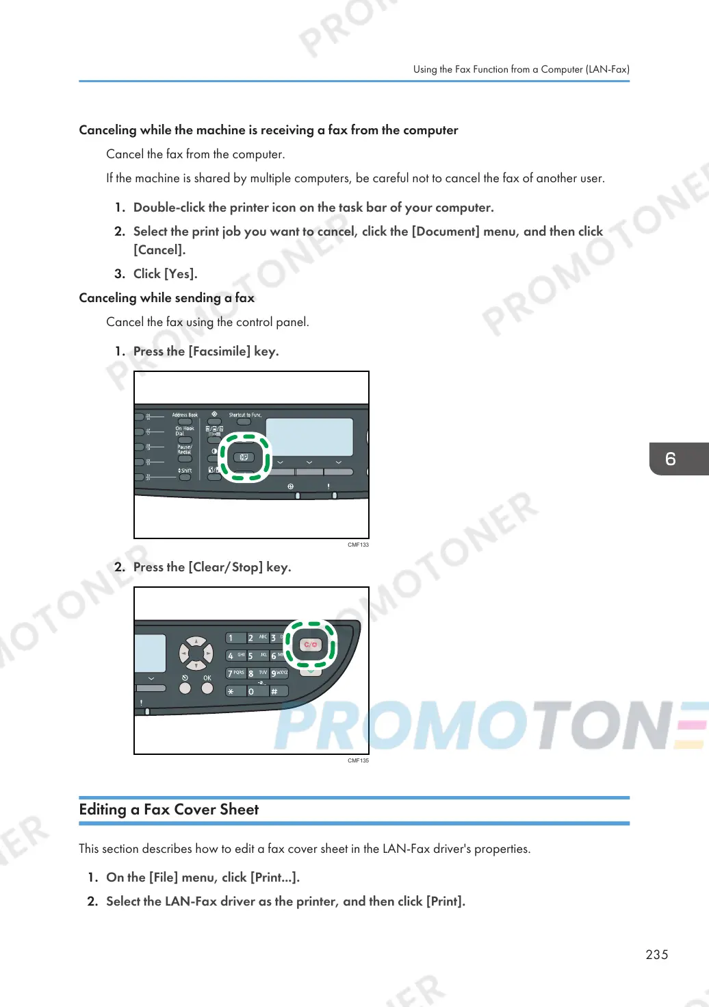 If the machine is shared by multiple computers, be careful not to cancel the fax of another user.