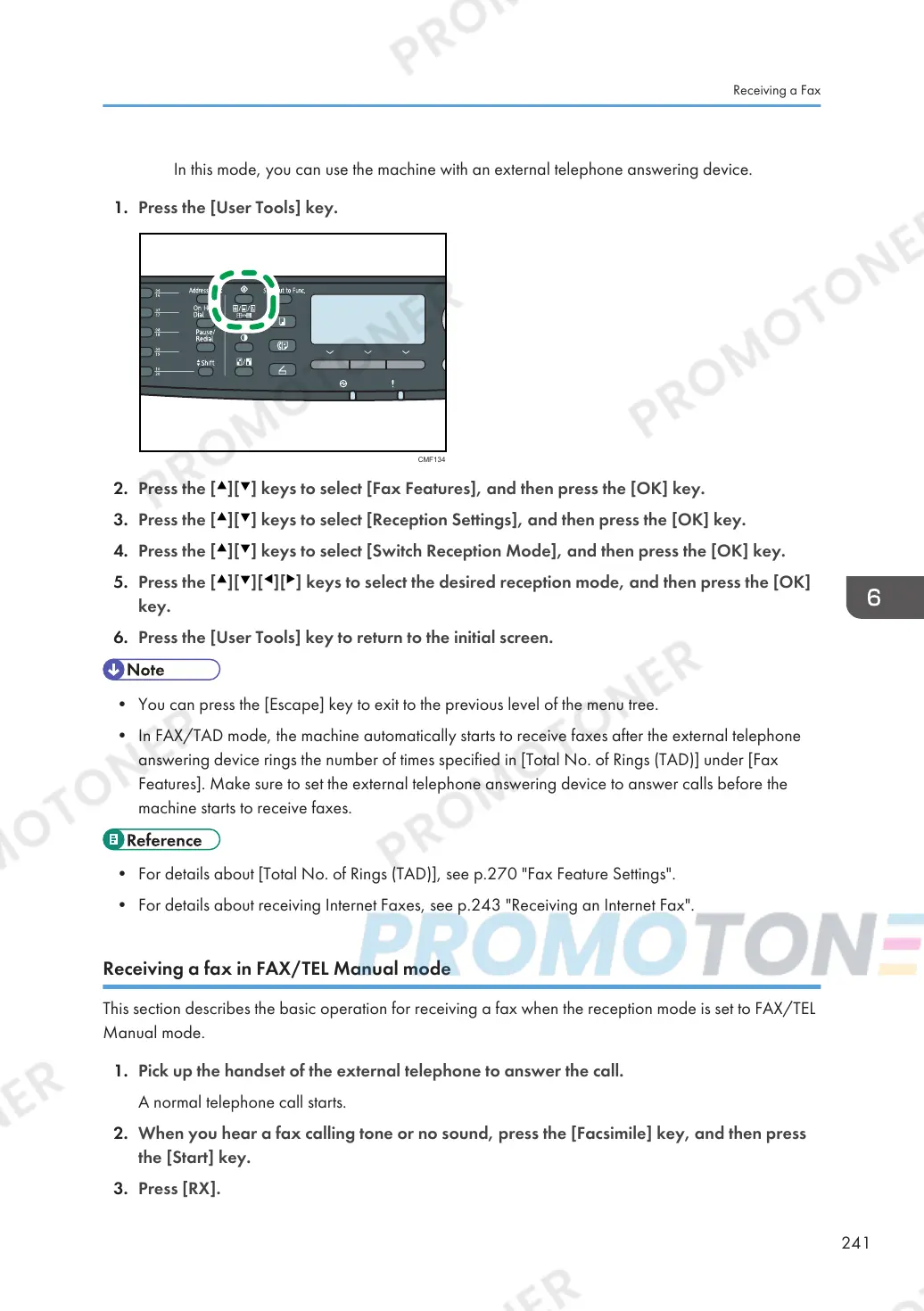 This section describes the basic operation for receiving a fax when the reception mode is set to FAX/TEL