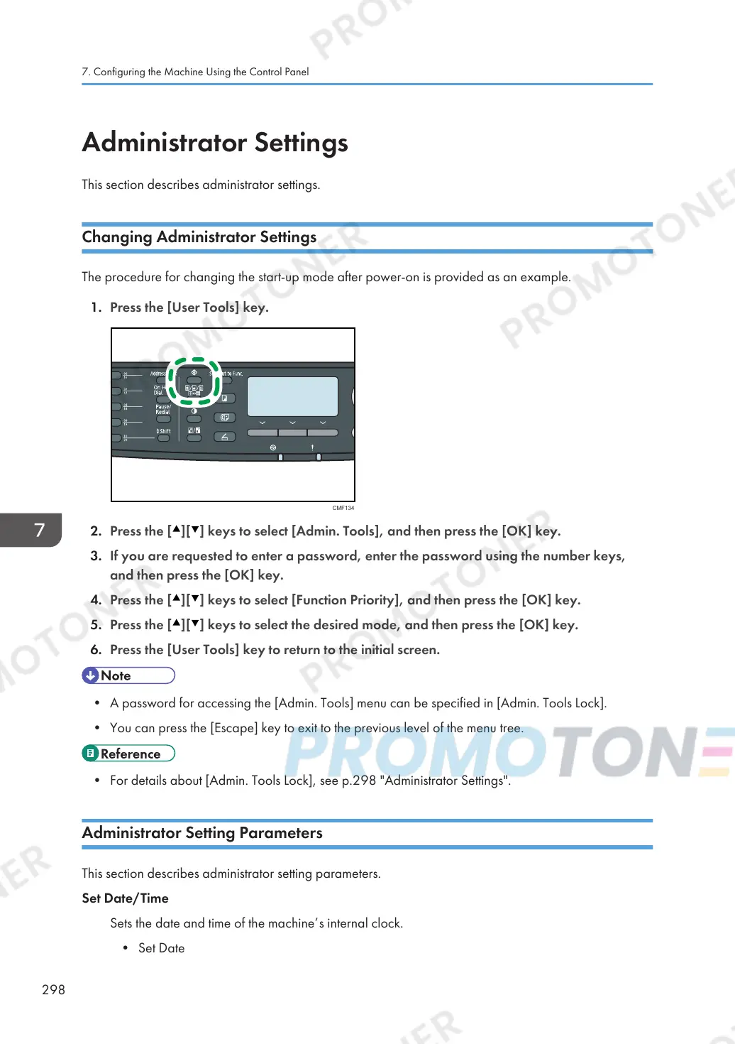 • For details about [Admin. Tools Lock], see p.298 "Administrator Settings".