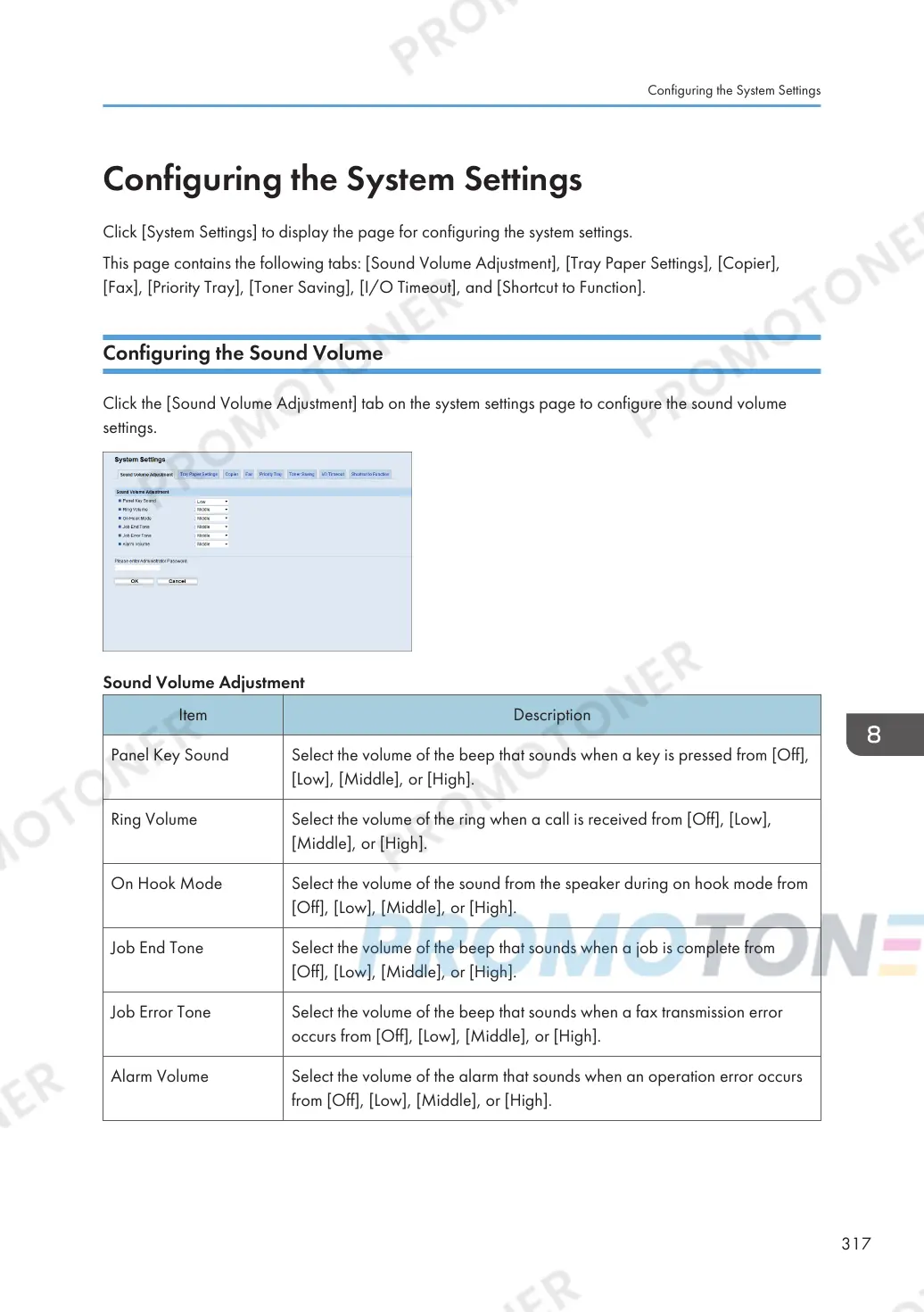 Click the [Sound Volume Adjustment] tab on the system settings page to configure the sound volume