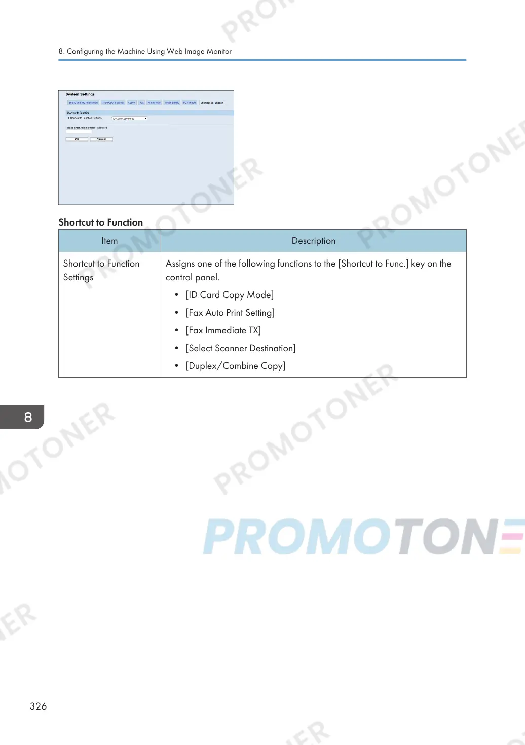 Assigns one of the following functions to the [Shortcut to Func.] key on the