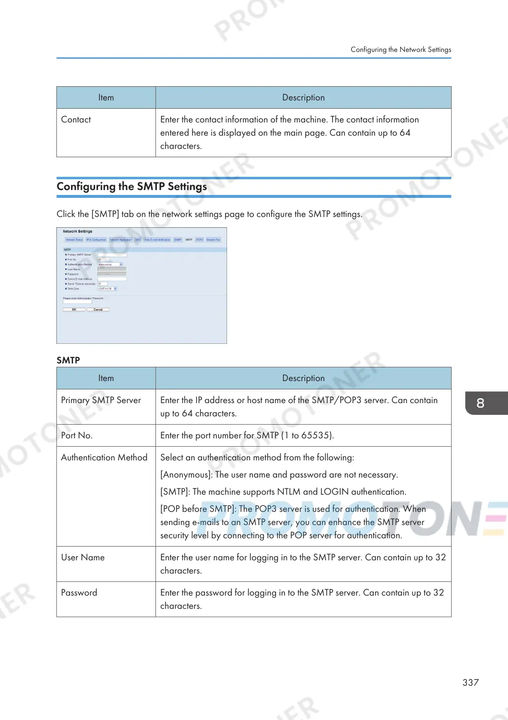 Ricoh Aficio SP 3510SF - Configuring the SMTP Settings