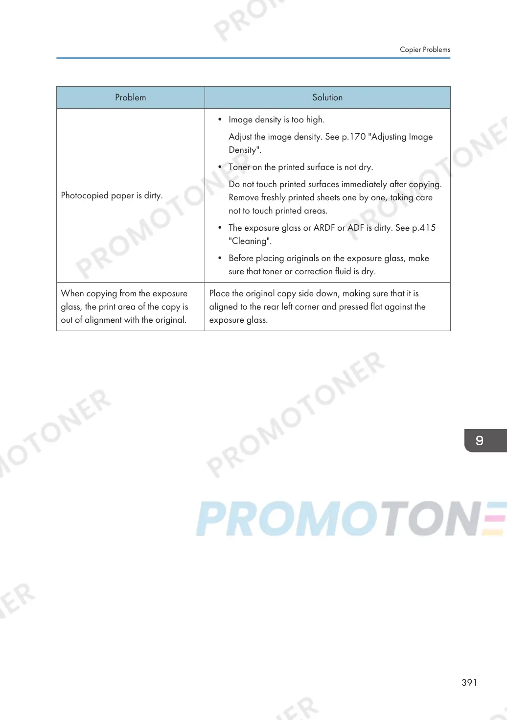 • The exposure glass or ARDF or ADF is dirty. See p.415