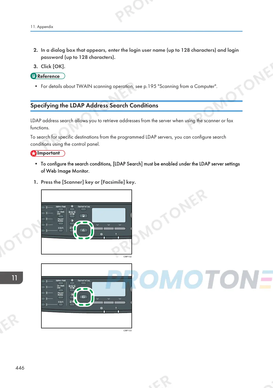 • For details about TWAIN scanning operation, see p.195 "Scanning from a Computer".