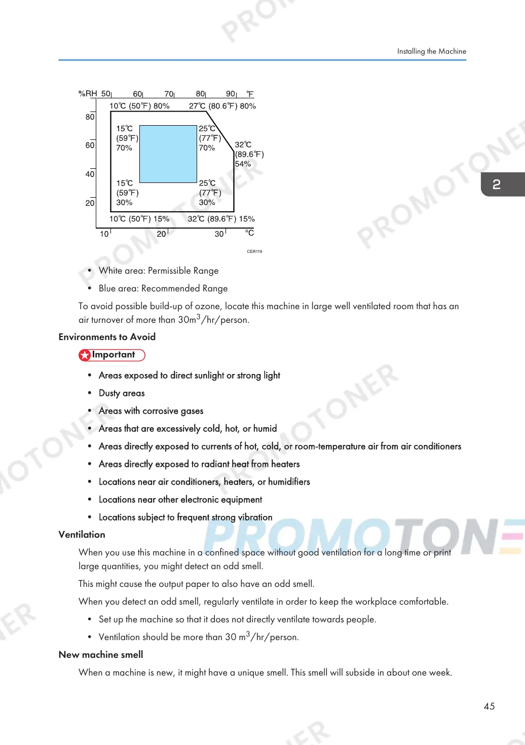 To avoid possible build-up of ozone, locate this machine in large well ventilated room that has an