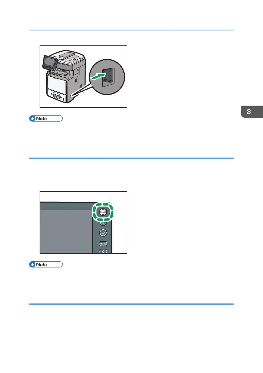 • After you switch the main power on, a screen may appear to indicate that the machine is