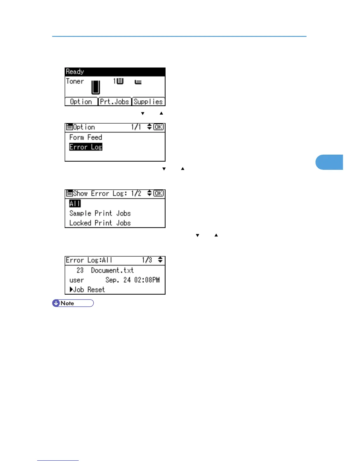 2. Select [Error Log] using the [ ] or [ ] key, and then press the [OK] key.