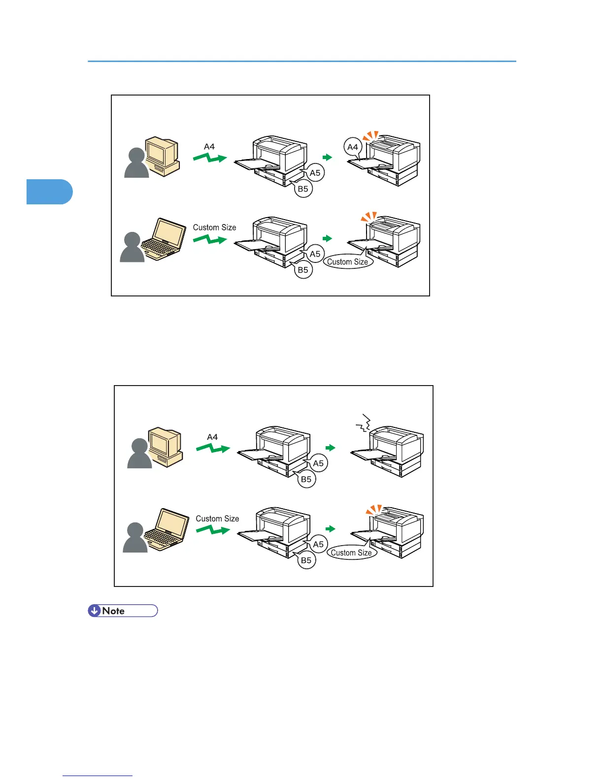 If the printer's trays do not contain paper matching the settings of the print job but custom paper was