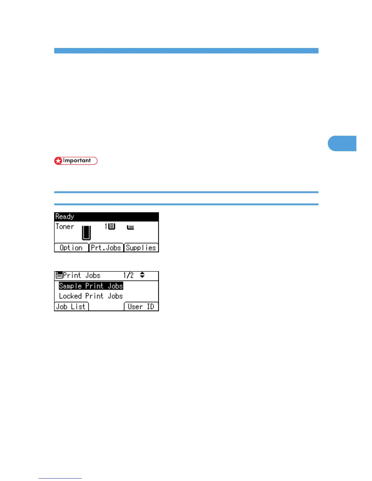 If you press [Prt.Jobs] on the initial screen, a screen prompting to select the type of print job appears.