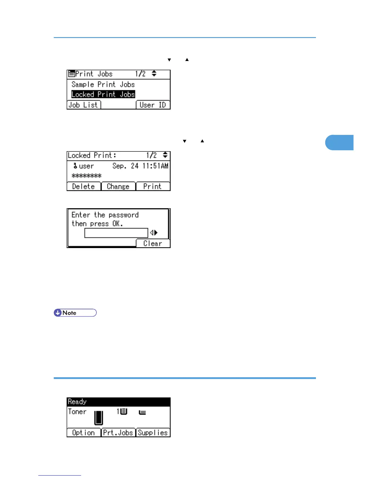 2. Select [Locked Print Jobs] using the [ ] or [ ] key, and then press [Job List].