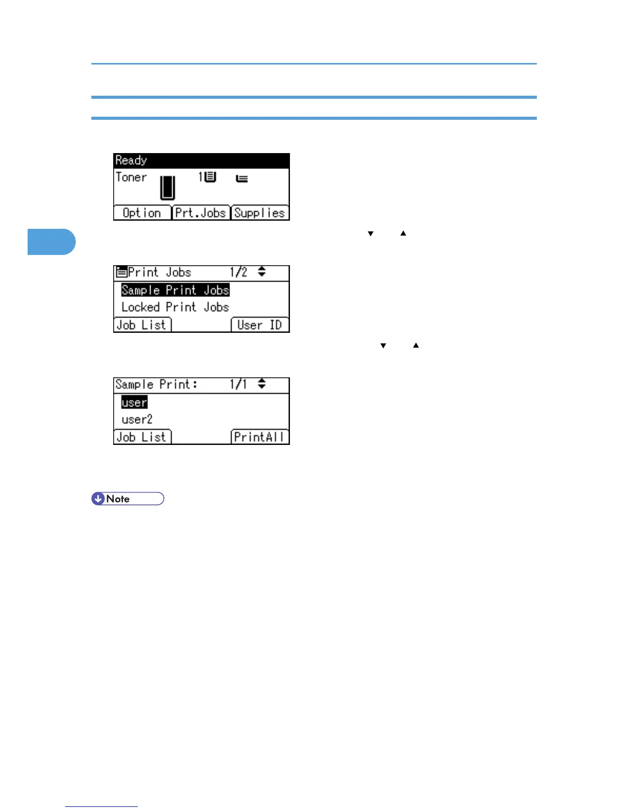2. Select a type of print jobs you want to print using the [ ] or [ ] key, and then press [User