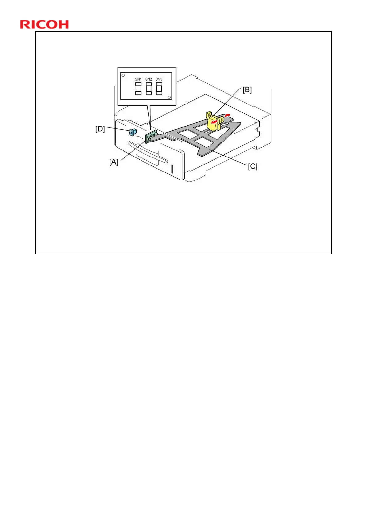 The paper size detection sensor board [A] detects the size of the paper in the