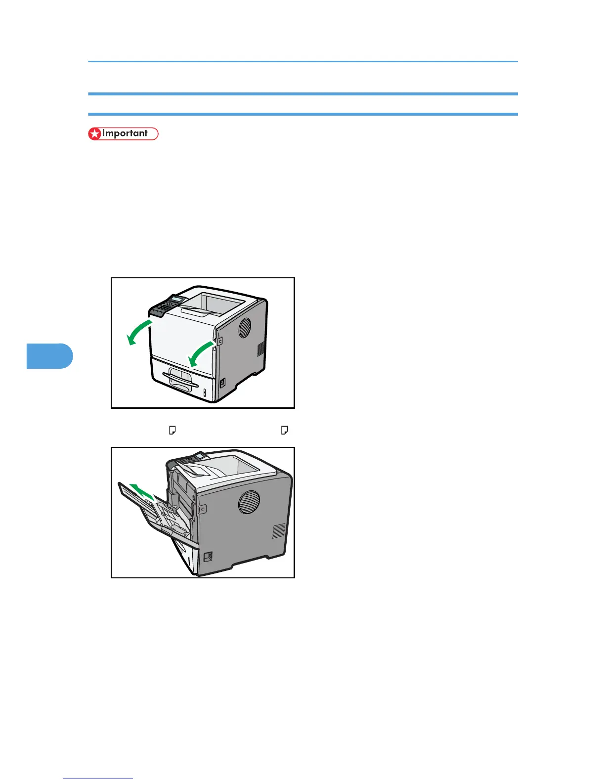 • During printing, do not open or close the printer covers or bypass tray, or pull out or push in the paper