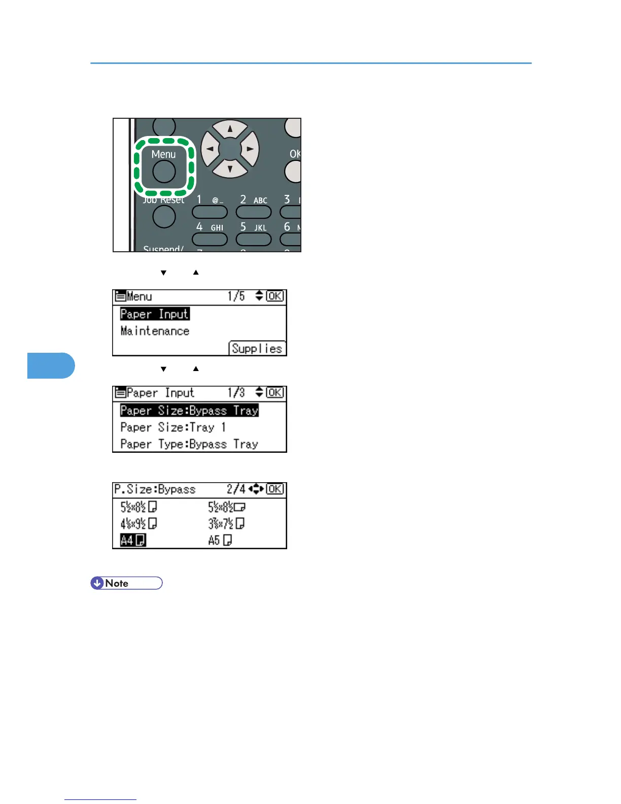 3. Press the [ ] or [ ] key to select [Paper Size:Bypass Tray], and then press the [OK] key.