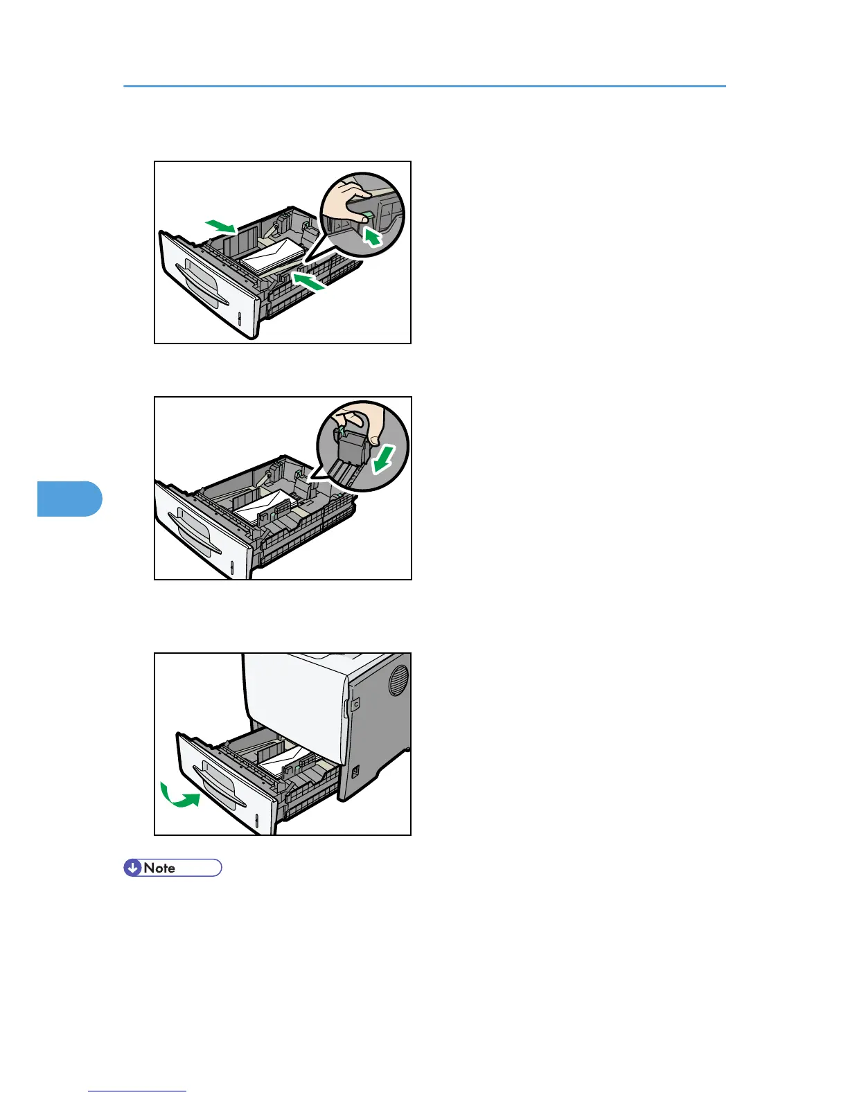 12. Hold the tray with both hands, slide it along the rails of the printer body, and then push it