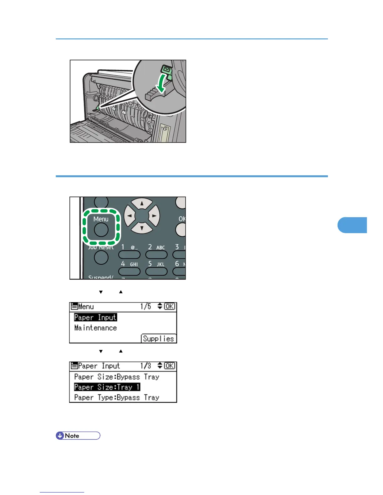 3. Press the [ ] or [ ] key to select [Paper Size: (tray name)], and then press the [OK] key.