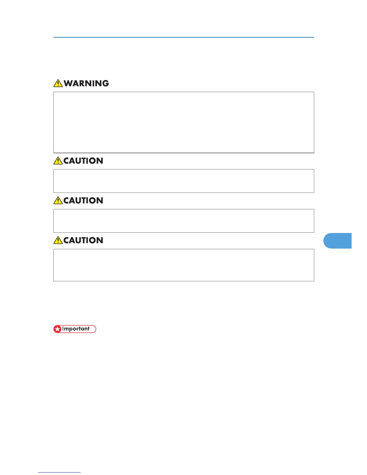 • The inside of the machine could be very hot. Do not touch the parts with a label indicating the