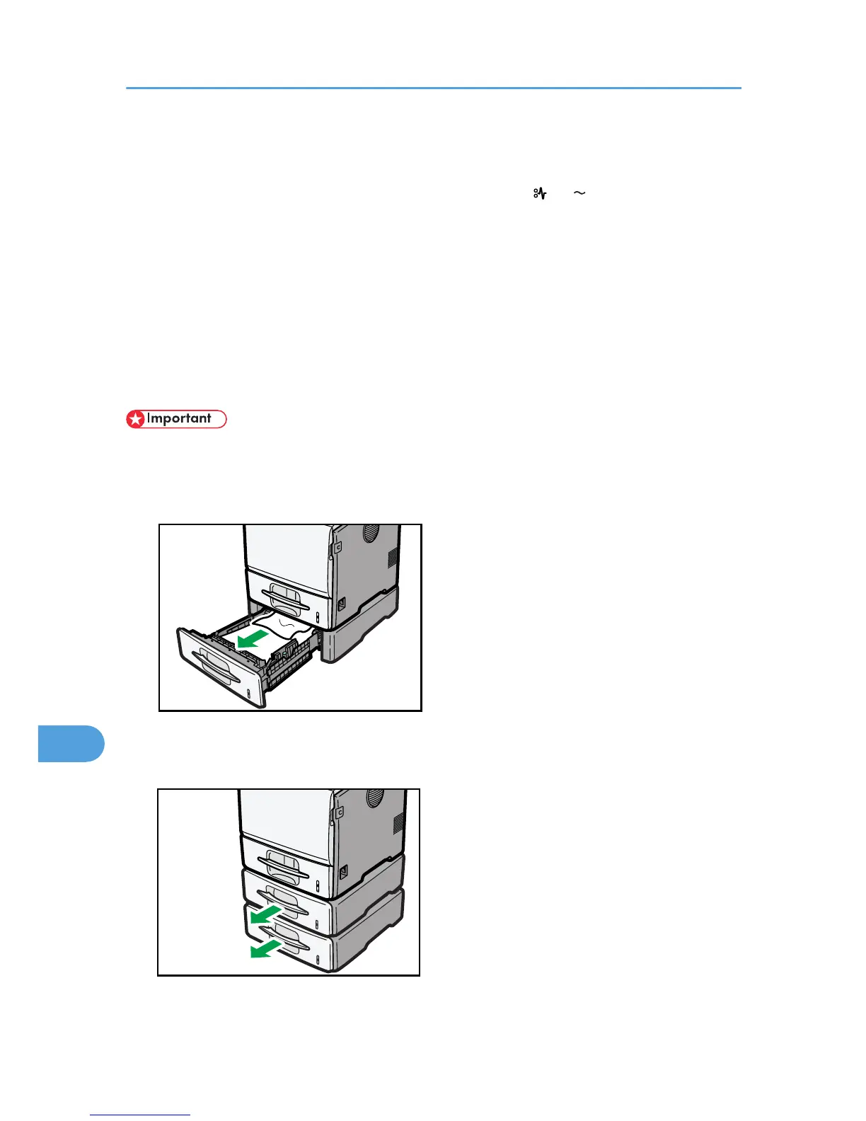 This section explains how to remove the jammed paper using tray 2 as an example. The same procedure