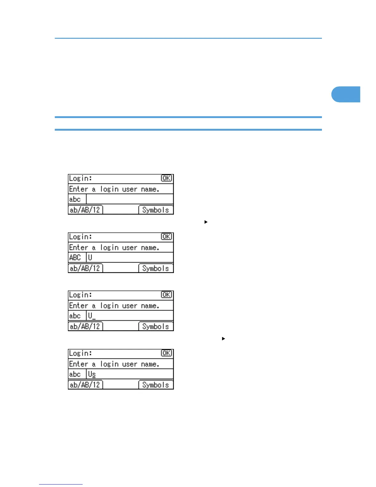 Use the following procedure to enter text in the text input screen. ("User#2" is the text entered in this