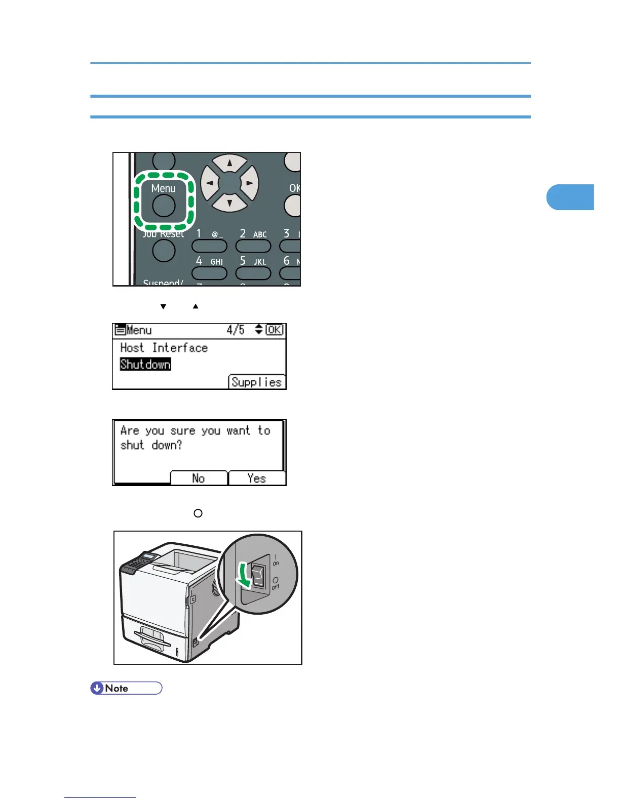 2. Press the [ ] or [ ] key to select [Shutdown], and then press the [OK] key.
