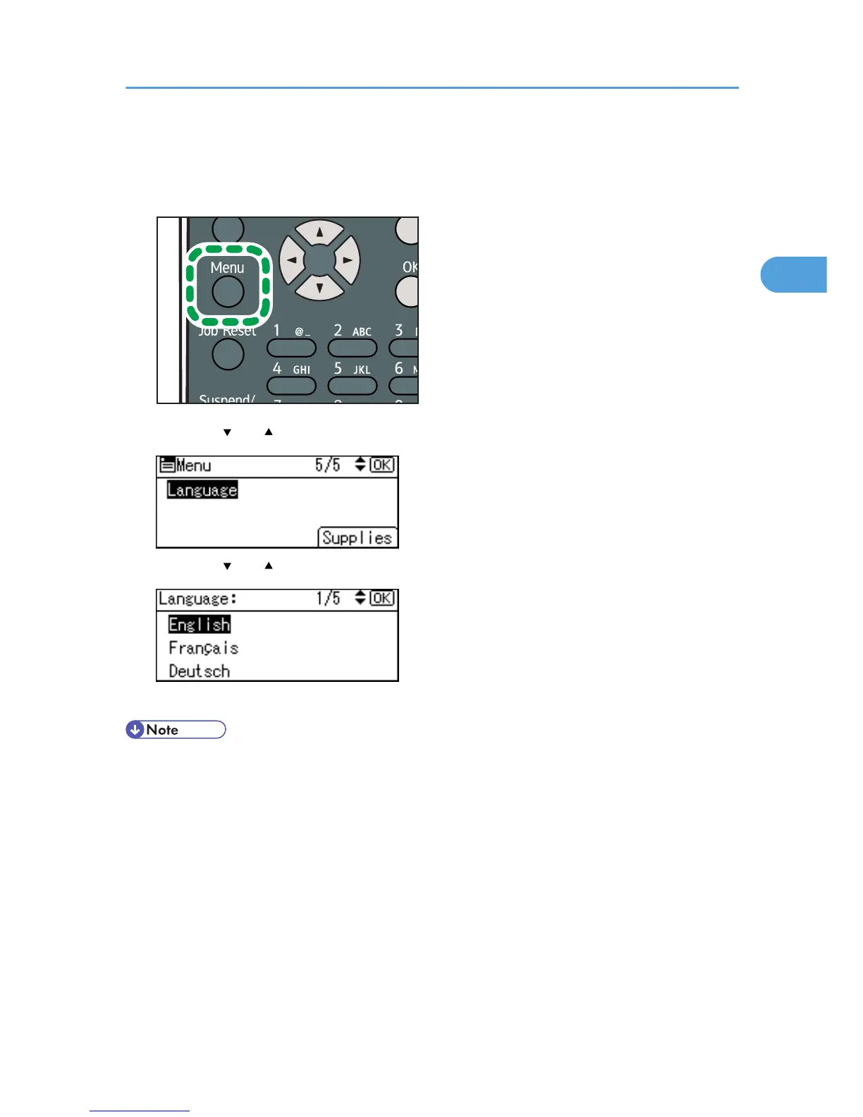 3. Press the [ ] or [ ] key to select the preferred language, and then press the [OK] key.
