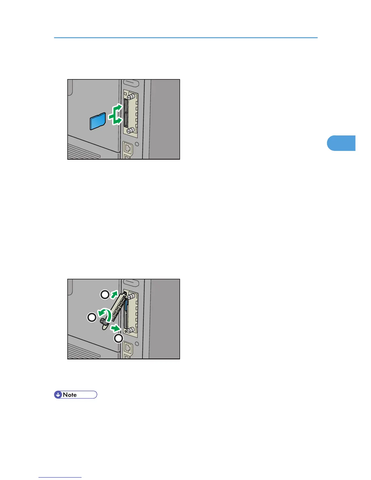 • Do not touch the card while the printer is in use. It may come loose, even if pushed only slightly. The