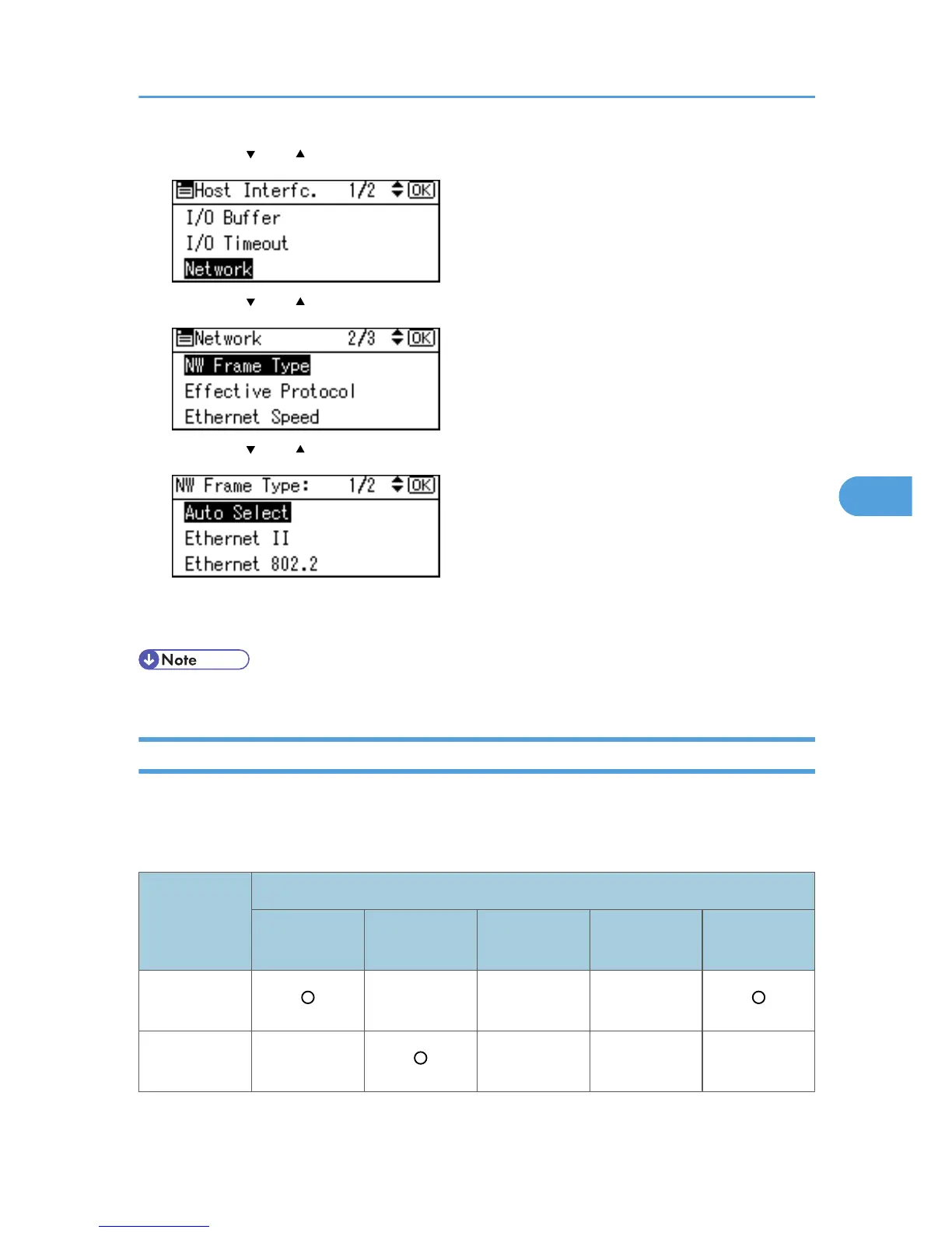 4. Press the [ ] or [ ] key to select [NW Frame Type], and then press the [OK] key.