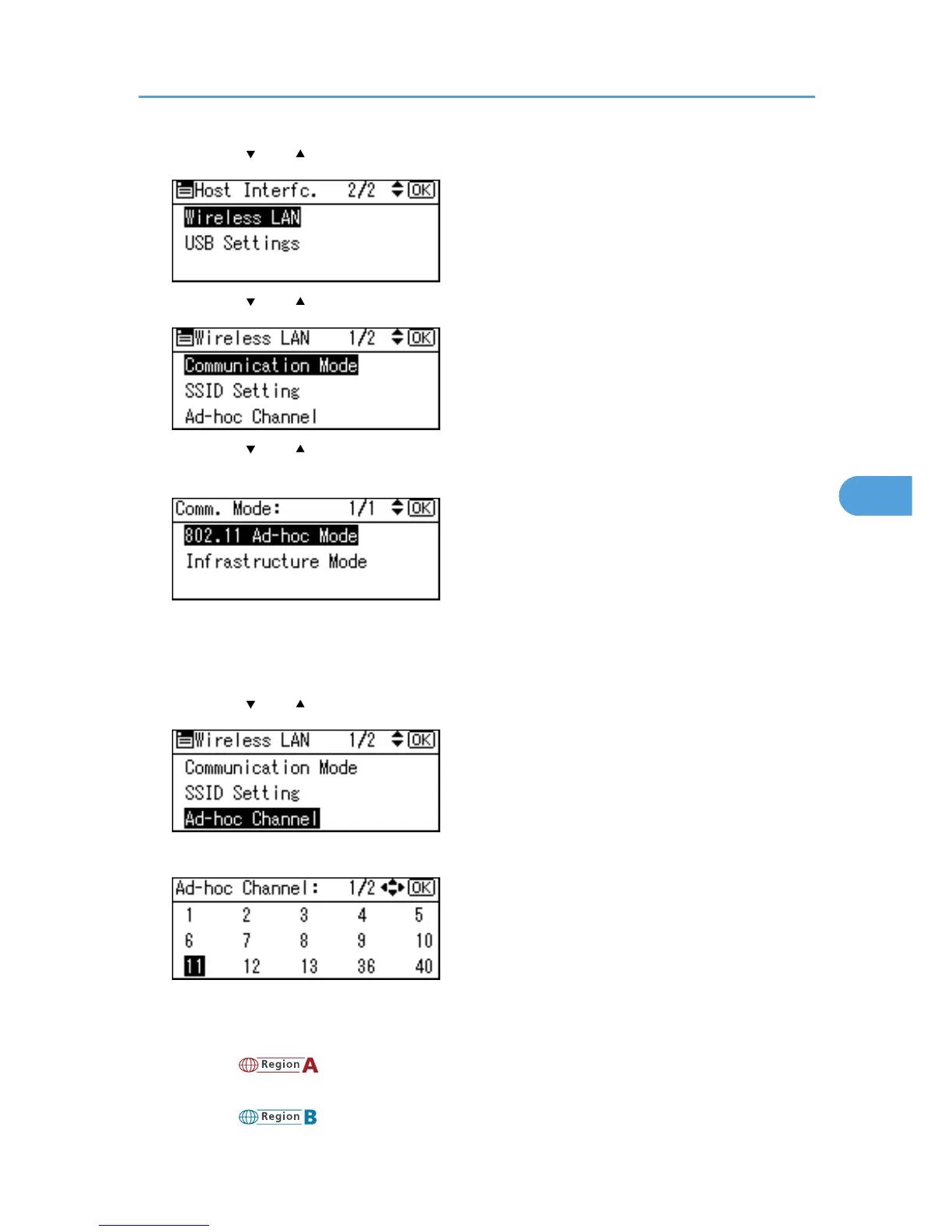7. Press the [ ] or [ ] key to select [Ad-hoc Channel], and then press the [OK] key.