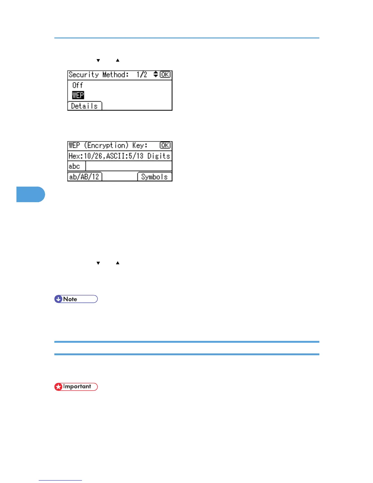 • The WEP key can also be set using a Web browser. For details, see Web Image Monitor Help.